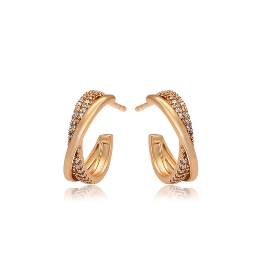 Twisted cross stud earrings 18K gold-plated | Zirconia jewelry | Elegant earrings
