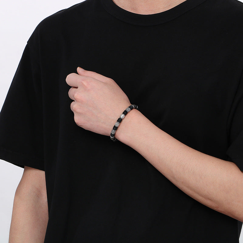 Stainless steel bracelet for men with microfiber leather insert – Timeless pearl design for business & leisure