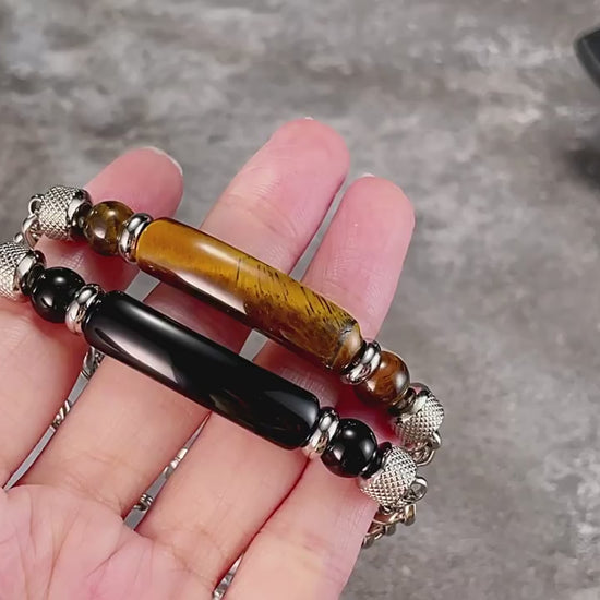 Stainless steel chain bracelet with tiger eye & titanium – For men