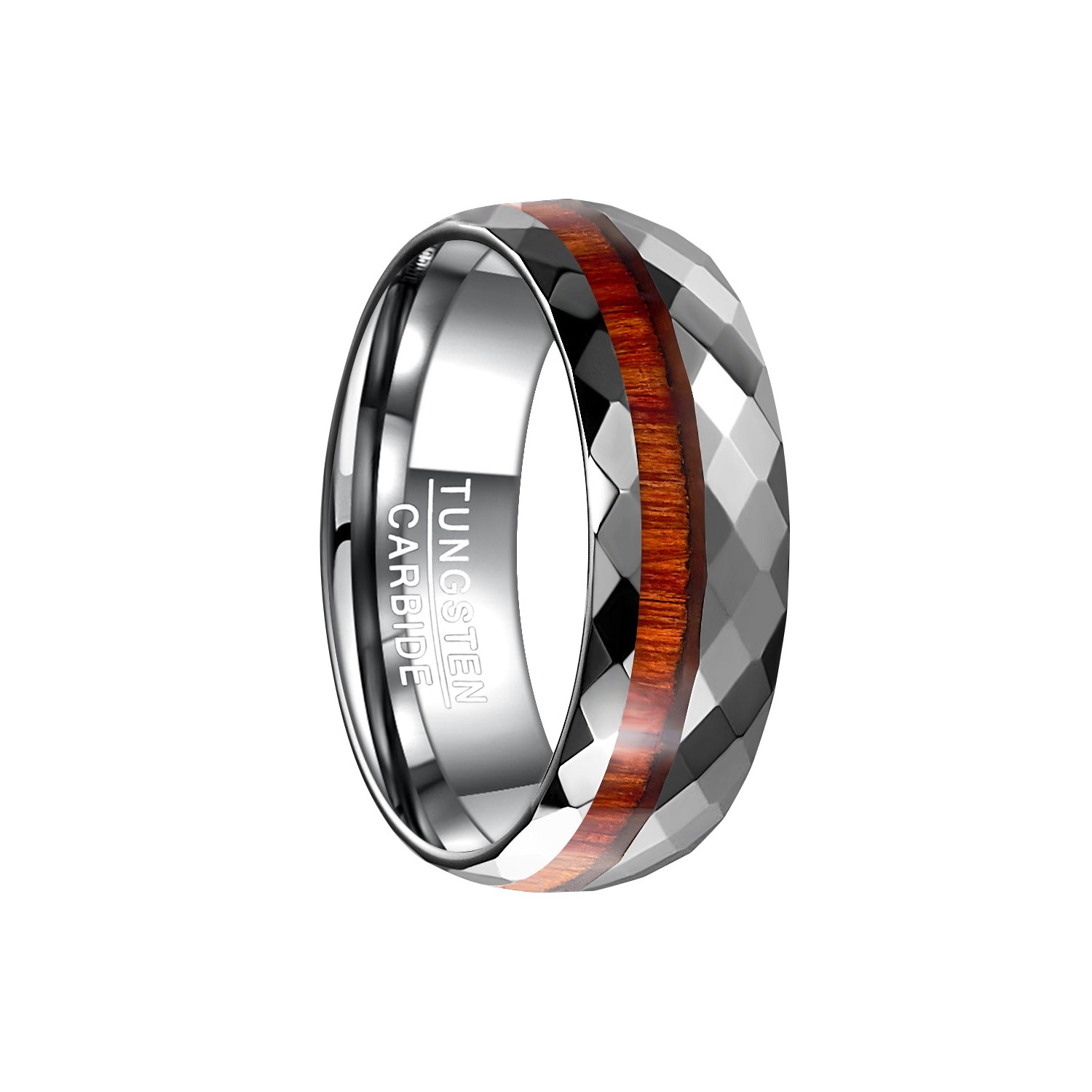 Herrenring aus Wolframcarbid in Stahloptik mit Facettenschliff & Holzeinlage – 8 mm, gravurfähig