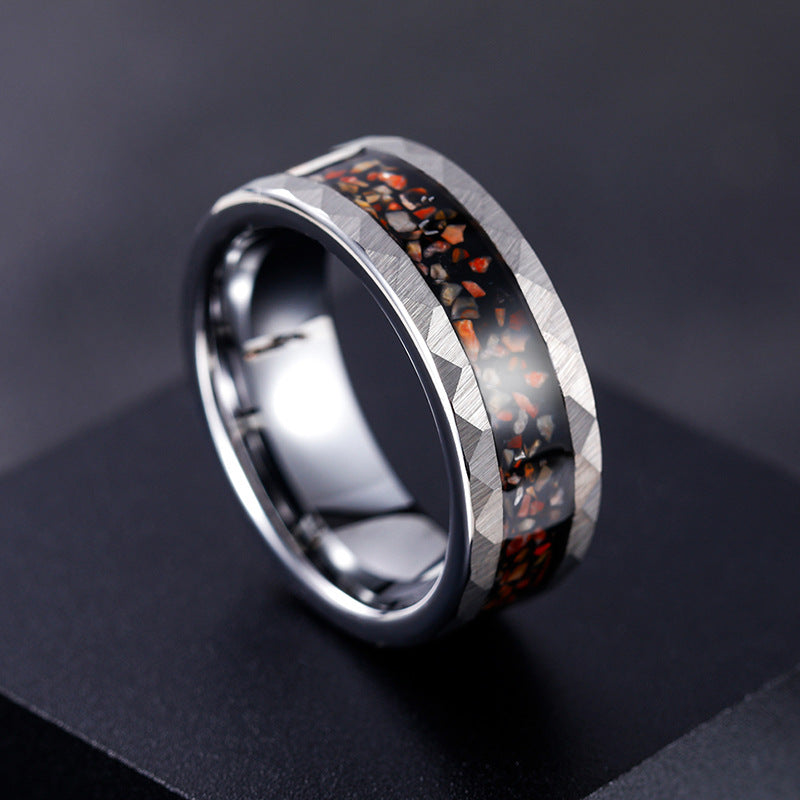 Herrenring aus Wolframcarbid mit Facettenschliff & Dinosaurierknochen-Einlage – 8 mm, gravurfähig