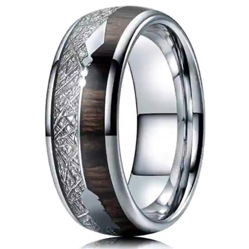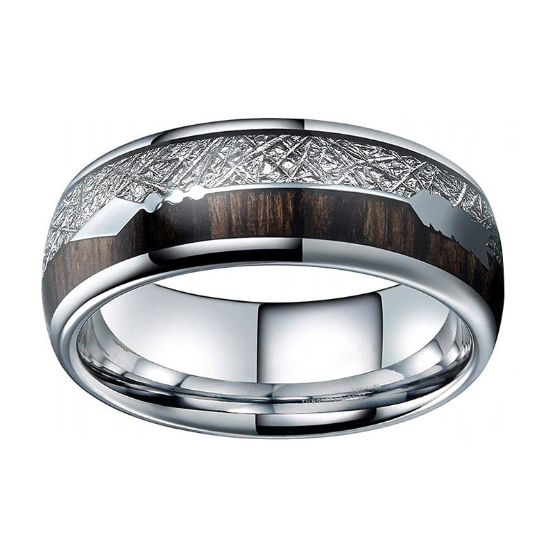 Herrenring aus Wolframcarbid mit Nut, Holzeinlage & Pfeilkopf-Schliff – 8 mm, gravurfähig