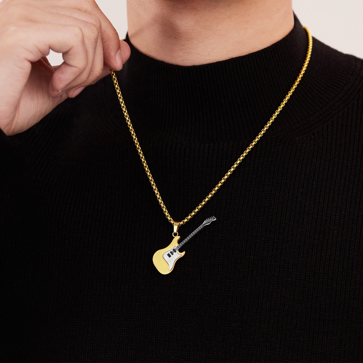 Hip-Hop Guitar Pendant Street Style – Classic Titanium Necklace for Men