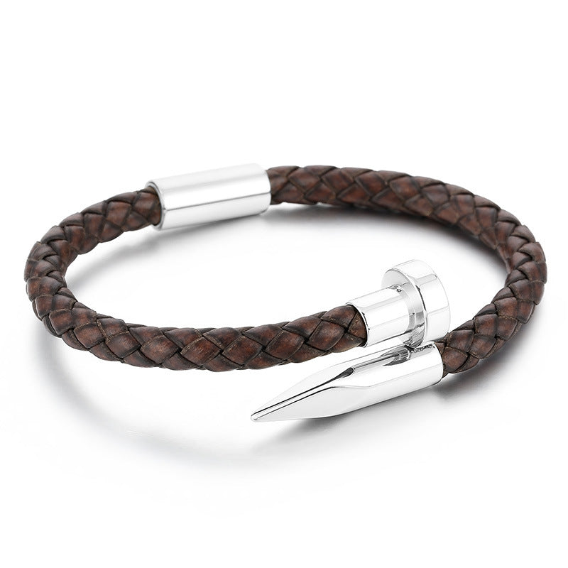 This high-quality leather bracelet made of genuine cowhide combines durability with modern style. The precisely crafted stainless steel rivets give the bracelet a striking character, while the innovative magnetic clasp ensures maximum comfort.