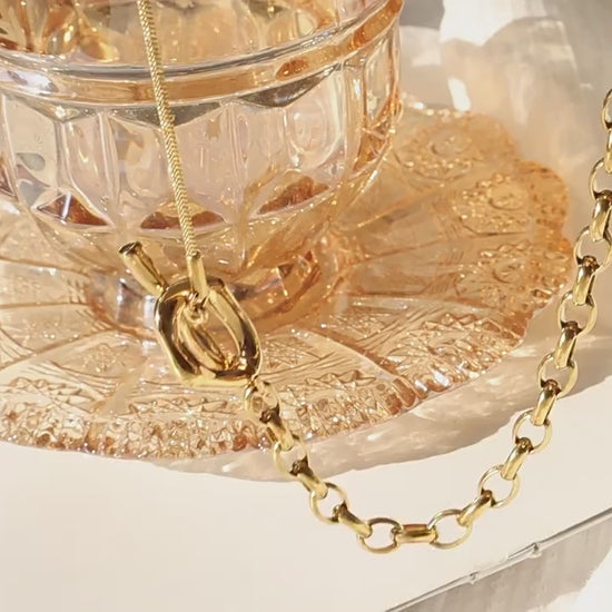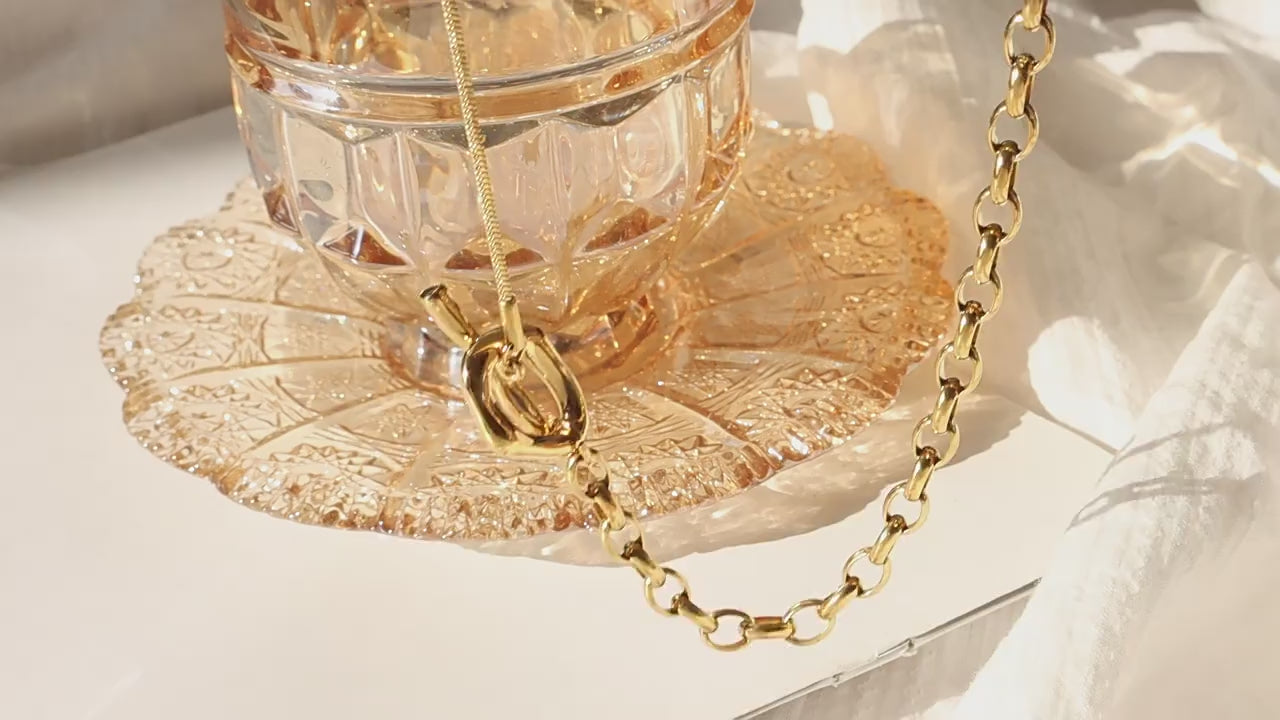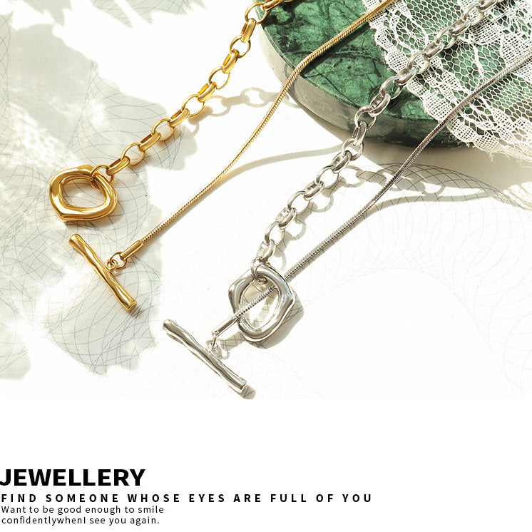 Trendy OT clasp necklace with adjustable length. Made of high-quality titanium steel, available in an elegant 18k gold look or modern steel design. Perfect for layering styles and as statement jewelry. Hypoallergenic and easy to care for.