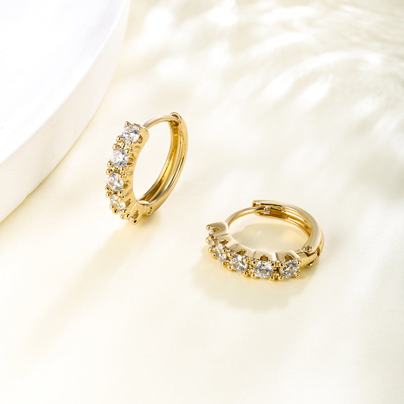 Pavé ear clips with zirconia - copper alloy gold-plated (1.6 cm)