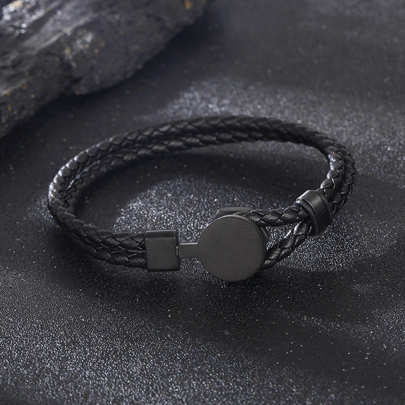 Double braided retro leather bracelet with punk strap decor – Handmade unique jewelry