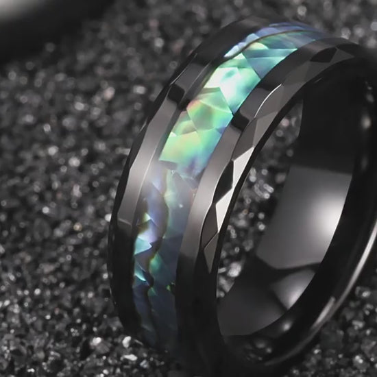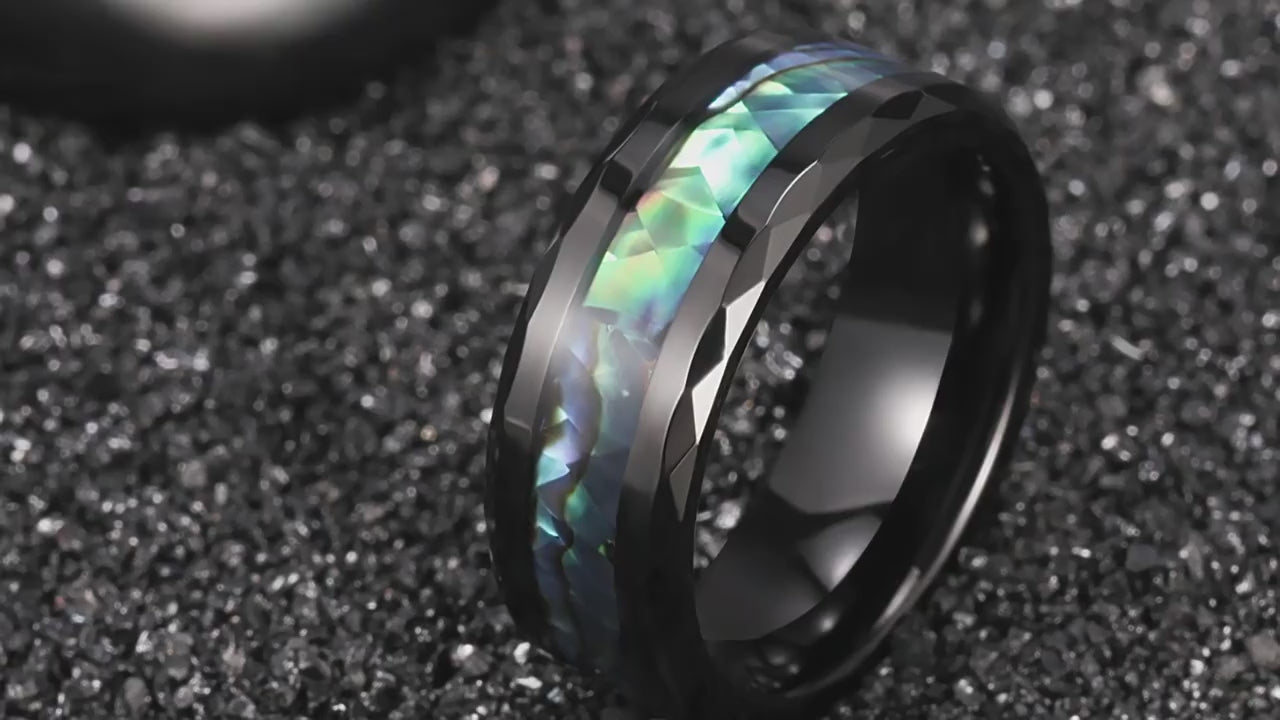 Robuster Wolframring mit einzigartigem Camouflage-Perlmutt