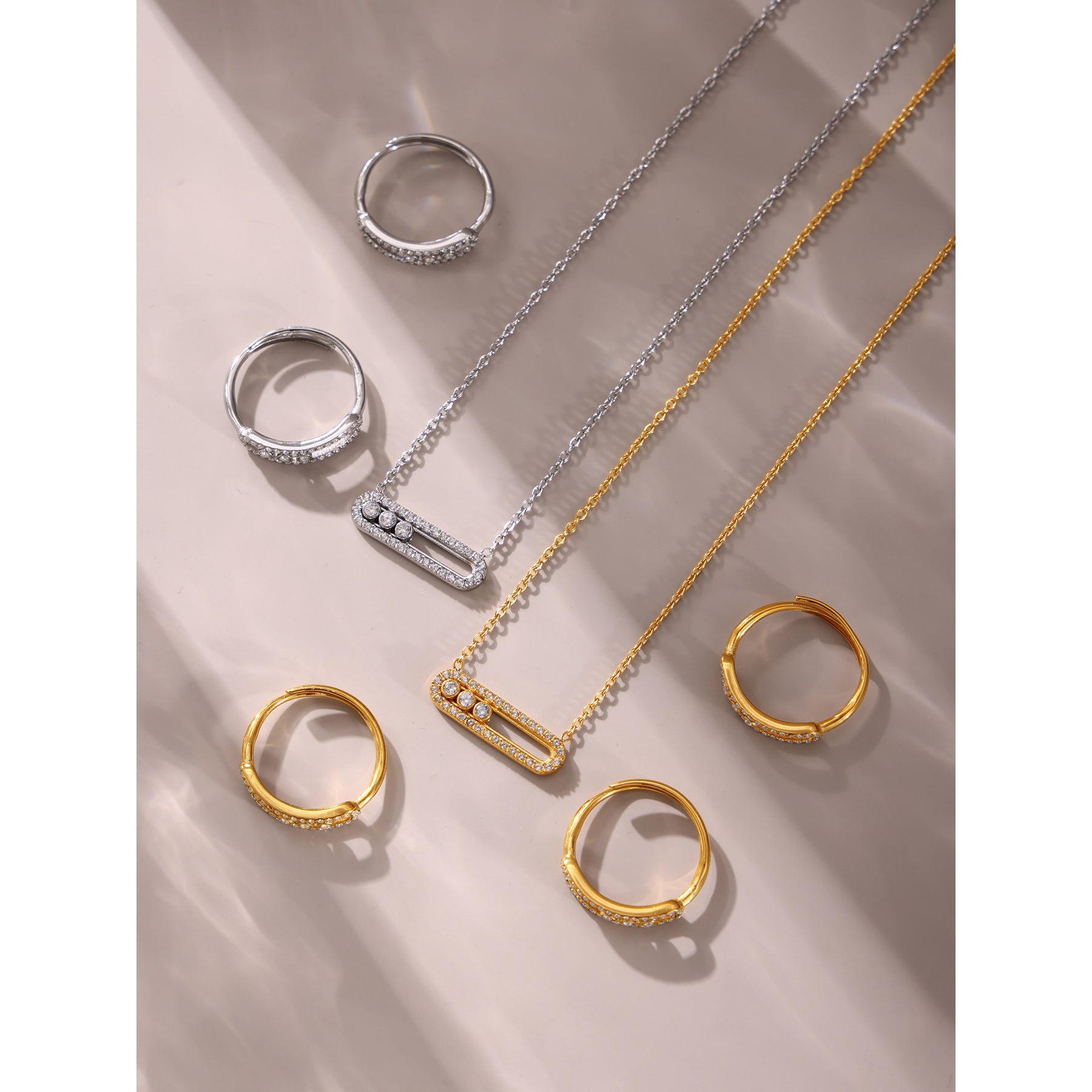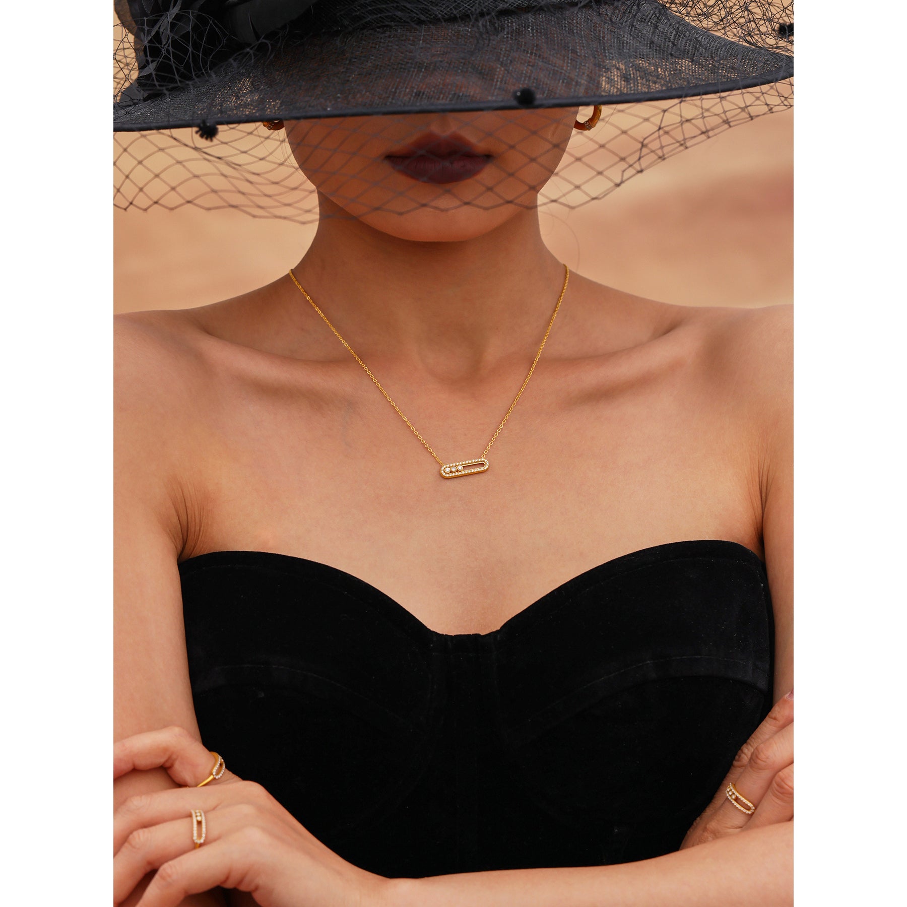 A modern, simple zirconia pendant with a sliding design – available in either elegant 18K gold plating or a timeless stainless steel finish. Perfect for individual styling creations.