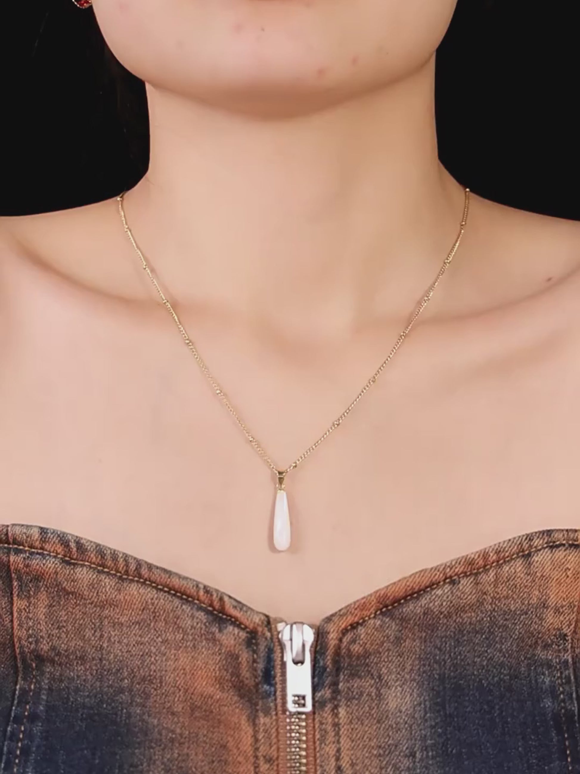 Drop-shaped shell pendant necklace - stainless steel 18k gold-plated | steel color (2 colors available)
