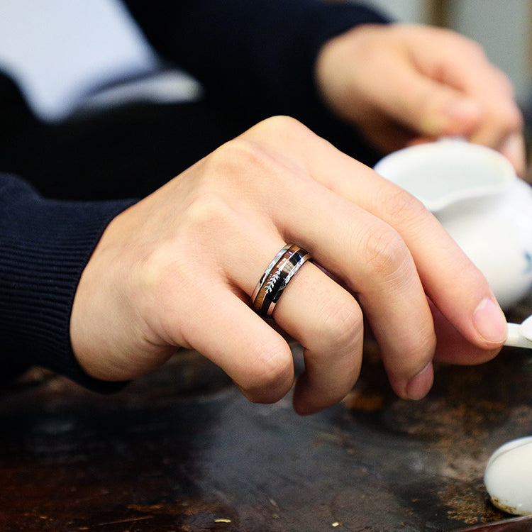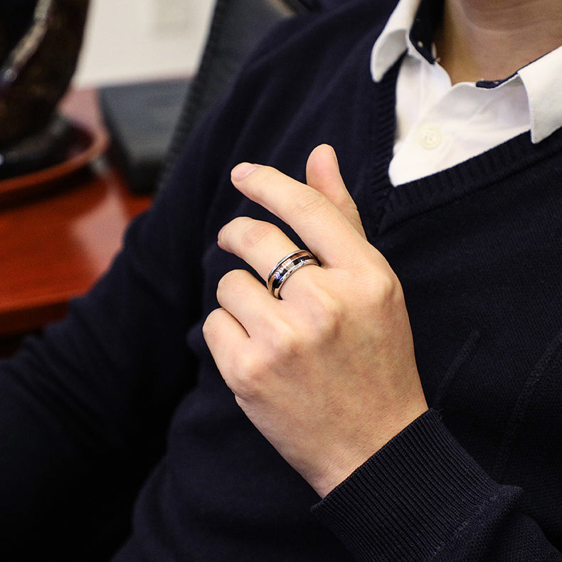 PIOWNN® EXKLUSIV: Ehering aus Wolfram mit ECHTEM Muonionalusta Meteoriten
