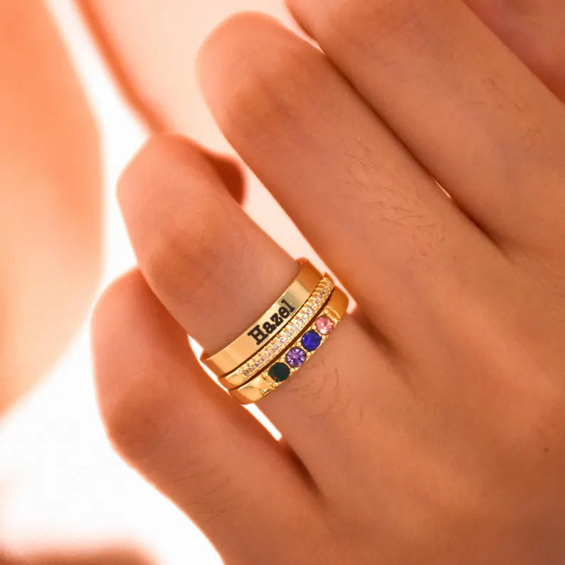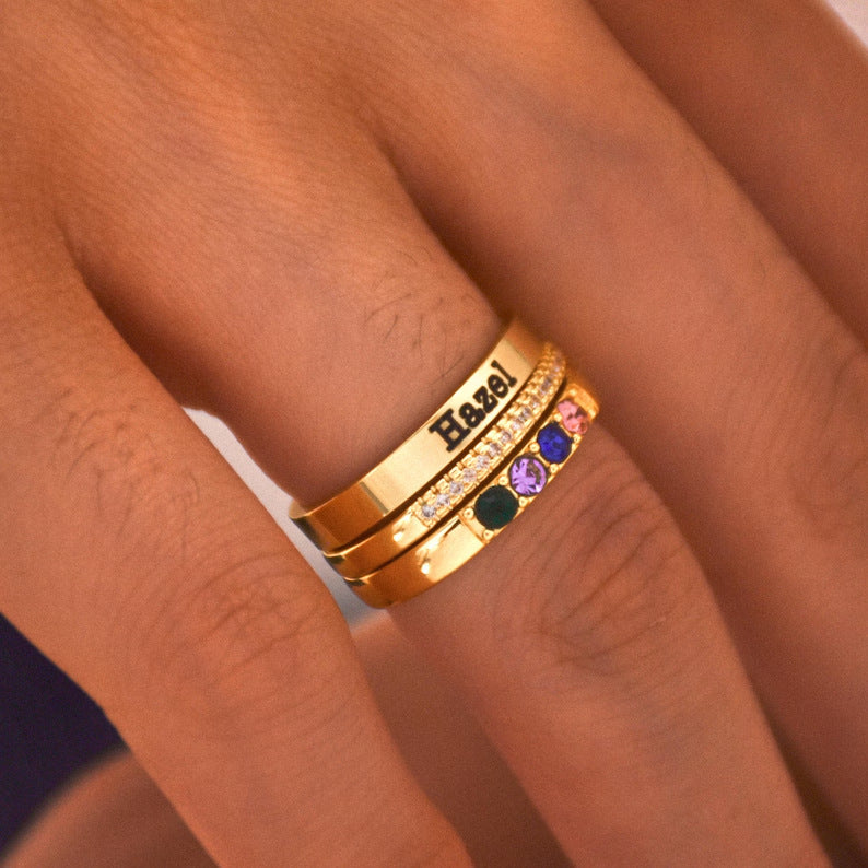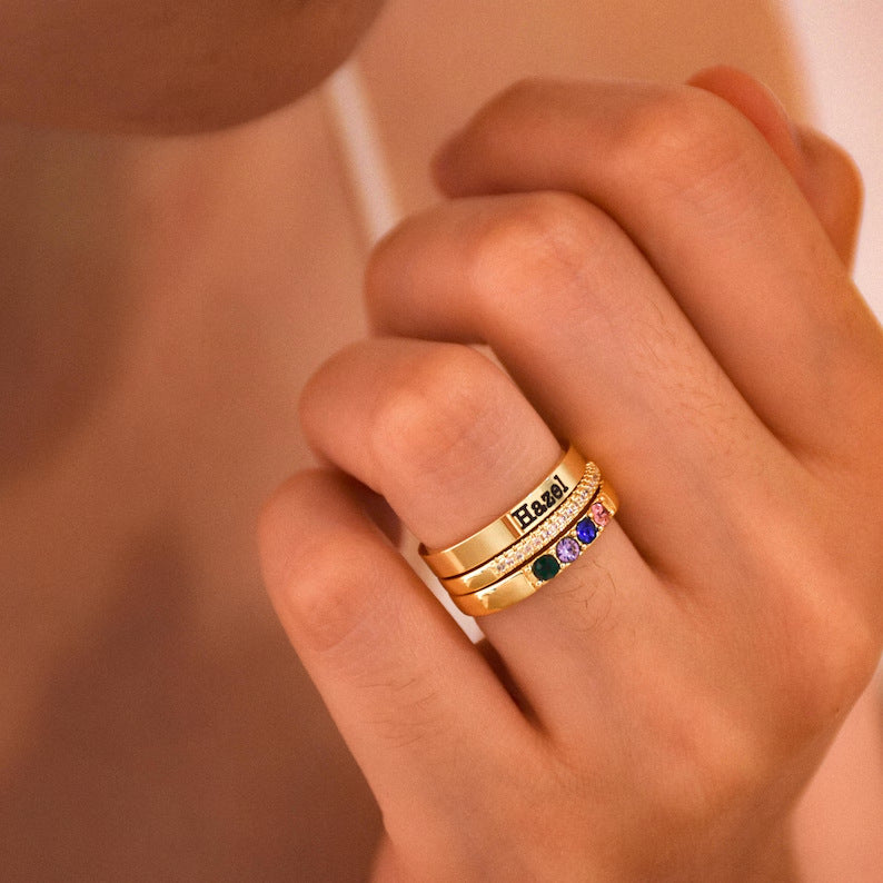 Personalisierbarer Damenring in 3 Schichten aus S925 Silber mit Geburtssteinen für alle 12 Monate, individuell anpassbar